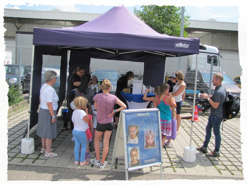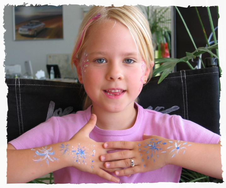 Unser Kinderschminkteam ist für Sie bundesweit im Einsatz. Ein Highlight für jedes Event. Unsere professionellen Schminkfeen begeistern Ihre Gäste beim Kinderschminken mit Kreativiät und Liebe zum Detail. Wir arbeiten beim Kinderschminken, ausschließlich nur mit dermatologischen, hautfreundlichen Profi-Schminkfarben von Grimas. Wir haben für den Outdoorbereich ein kostenloses Schminkzelt sowie eine Kindermalecke zum verweilen der wartenden Kidis dabei.